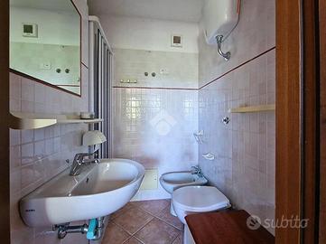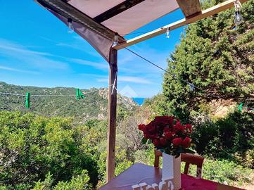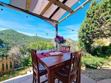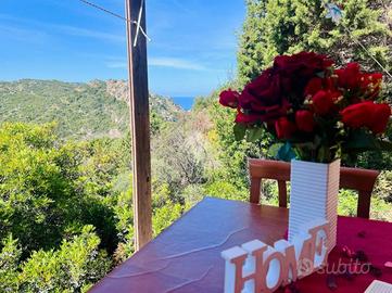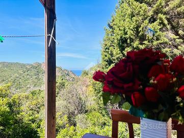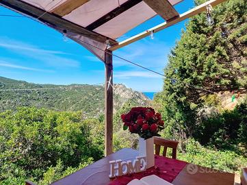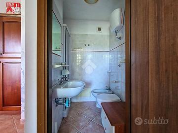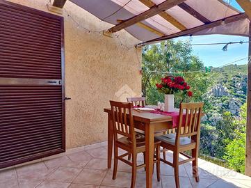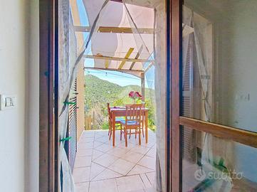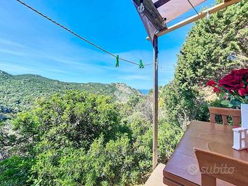 Accediamo all'appartamento mediante dei gradini, che ci portano al terrazzo di proprietà con vista mare. Questo spazio esterno è ideale per chi ama rilassarsi all'aperto.