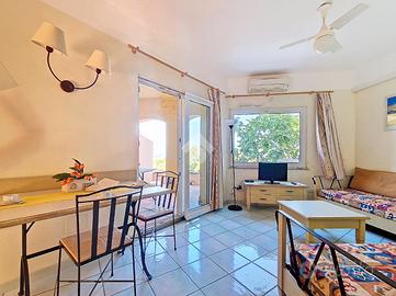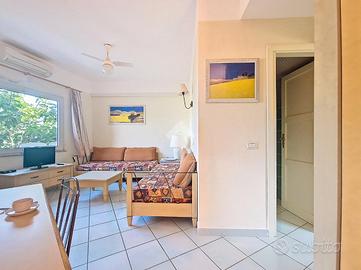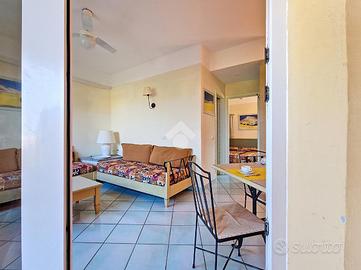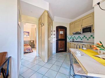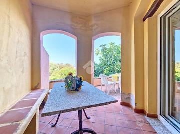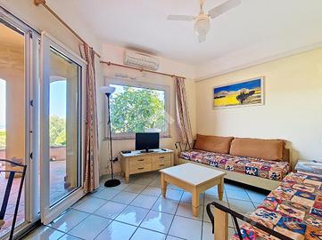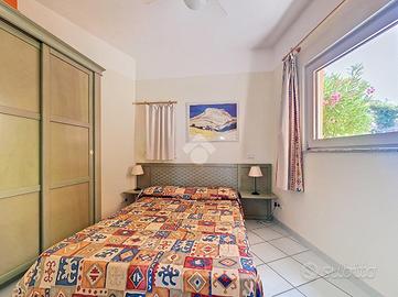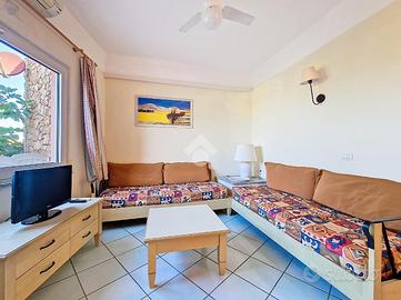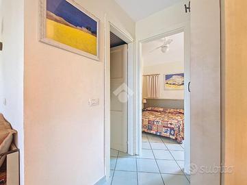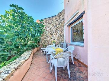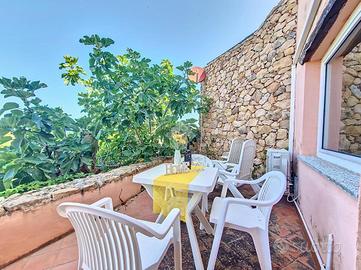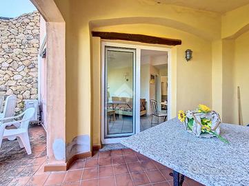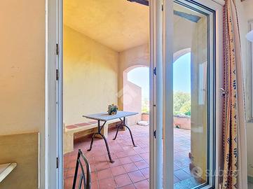 Al piano terra di uno dei complessi è presente l'appartamento oggetto di vendita, un comodo bilocale con terrazza vivibile dove è possibile rilassarsi all'aria aperta godendo di uno scorcio di vista mare.