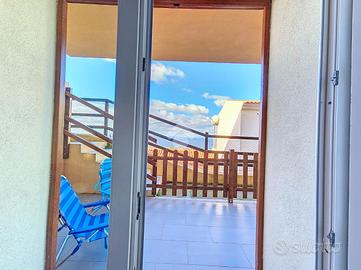 Dalla zona giorno accediamo al terrazzo di proprietà di circa 20 mq, che si estende dalla zona giorno alla camera da letto, da qui è possibile godere di una meravigliosa vista sul mare.