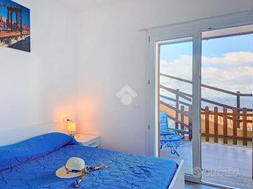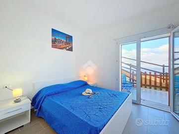 Tramite la zona giorno accediamo alla zona notte composta dal bagno ad areazione forzata e dalla camera da letto matrimoniale dalla quale si vede il mare, ideale per chi vorrebbe svegliarsi la mattina e aprendo le persiane godere di uno spettacolo unico.