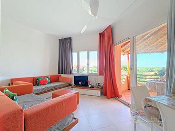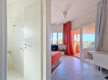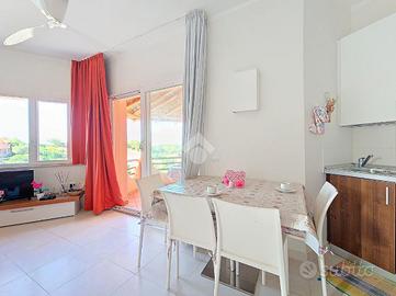 Al piano primo di uno dei complessi è presente l'appartamento oggetto di vendita, un comodo bilocale con terrazza vivibile dove è possibile rilassarsi all'aria aperta godendo di una bella vista mare.