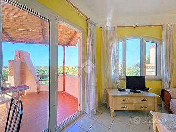 Al piano primo di uno dei complessi è presente l'appartamento oggetto di vendita, un comodo bilocale con terrazza vivibile dove è possibile rilassarsi all'aria aperta godendo di una bella vista mare.