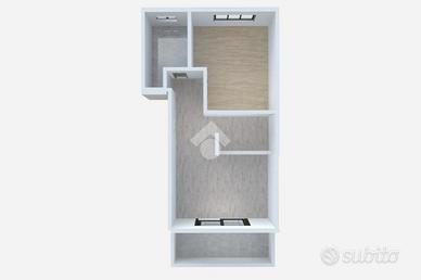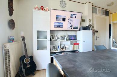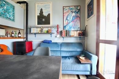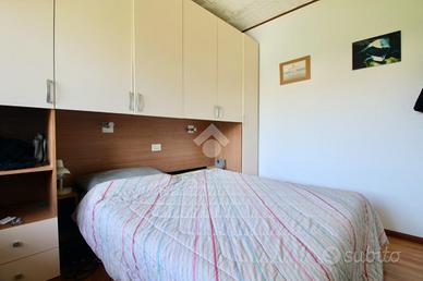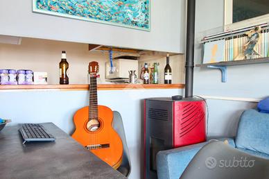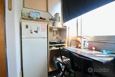 Nella zona giorno sono presenti il soggiorno con veranda e l'angolo cottura separati da un muretto a mezza altezza.