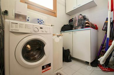 La zona notte comprende una camera matrimoniale dotata di una terrazza abitabile, un bagno cieco con box-doccia e la lavanderia.