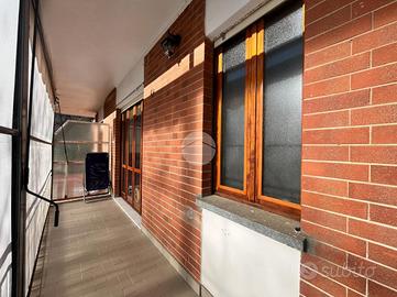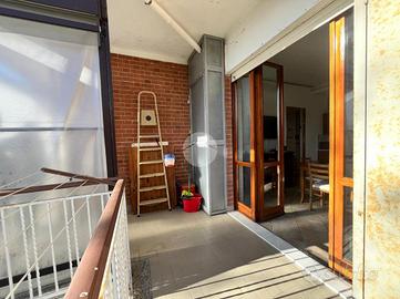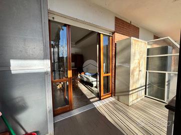 Uno dei punti di forza dell'appartamento è il terrazzo con splendida vista panoramica, accessibile sia dal soggiorno sia dalla camera da letto, impreziosito dalle tende invernali che permettono di viverlo al meglio in ogni stagione.