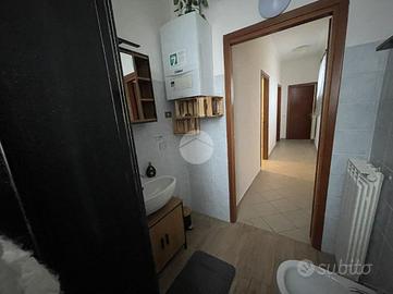 L'ingresso si apre sulla zona giorno dove troviamo un soggiorno con cucina a vista e un ripostiglio.