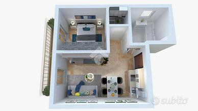 La proprietà, a soli 300 metri dal suggestivo centro storico di Vallebona, è in contesto tranquillo e riservato, all'interno di una piccola palazzina di recente costruzione composta da poche unità abitative. La posizione è panoramica e regala un ambiente silenzioso ma a pochi passi da tutti i principali servizi: farmacia, posta e negozi. Tramite una scala esterna raggiungiamo l'appartamento, al primo piano. L'ingresso si apre nella zona giorno con angolo cottura e accesso diretto al terrazzo vivibile. Un disimpegno conduce alla zona notte, composta da camera matrimoniale, bagno finestrato e comodo ripostiglio. L'immobile è esposto a sud e il riscaldamento è autonomo con basse spese condominiali. A completare la proprietà un comodo box auto e una cantina.