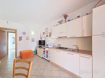 A differenza di altri immobili più grandi presenti nello stesso complesso, questo appartamento ha la particolarità di presentare una zona giorno più spaziosa; una vetrata scorrevole a livello ci accoglie all'interno, l'angolo cottura si sviluppa lungo tutta la parete permettendo di valorizzare il resto dell'ambiente con un tavolo da pranzo ed un divano.