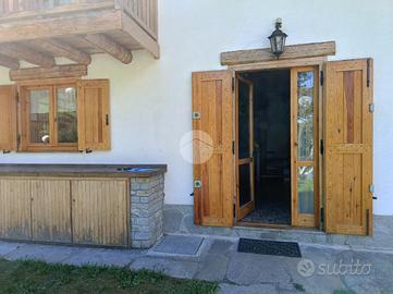 In frazione Les Toules a Valsavarenche, in una porzione di villa indipendente circondata da un ampio giardino, si propone un accogliente bilocale in stile montano perfetto come seconda casa ma adatto anche come abitazione principale.