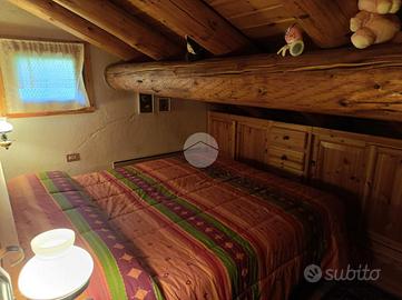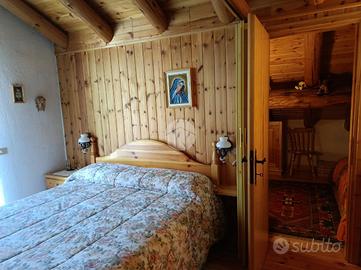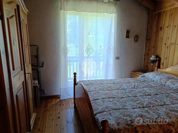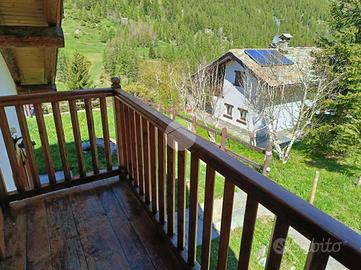 -al piano primo si trova una camera matrimoniale con accesso diretto al balcone e vista panoramica sulla Valsavarenche, un bagno con vasca e una cameretta con letto matrimoniale e letto singolo.