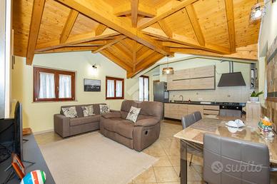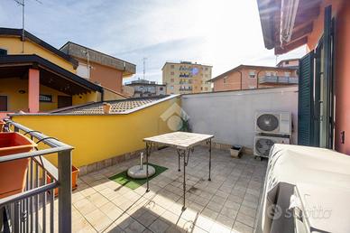 VAPRIO D'ADDA - BILOCALE COMPLETAMENTE ARREDATO CON TERRAZZO, CANTINA E BOX In pieno centro paese, a pochi passi da tutti i principali servizi, proponiamo grazioso bilocale sapientemente ristrutturato in classe energetica C, situato al primo ed ultimo piano impreziosito da travi a vista, libero su tre lati, completo di terrazzo, ripostiglio, cantina e box singolo. L'appartamento si apre su un ampio e luminoso soggiorno con cucina open space, rifinito con cura nei minimi dettagli. La zona living gode di accesso diretto al balcone privato, collegato ad uno splendido terrazzo di 17 mq, ideale per momenti di relax all'aperto, completo anche di pratico ripostiglio coperto. Attraverso il disimpegno si accede alla zona notte, composta da un generoso bagno finestrato con box doccia e da una spaziosa camera matrimoniale con porta finestra. L'immobile viene venduto completo di arredo e mobilio da esterno per il terrazzo. È dotato di serramenti in legno con doppio vetro, zanzariere ad ogni infisso, persiane in alluminio, videocitofono, caldaia autonoma a condensazione, riscaldamento a pavimento ed impianto di aria condizionata caldo/freddo in ogni ambiente. Completano la proprietà una comoda cantina piastrellata di 25 mq sfruttabile come palestra privata ed un box singolo nelle immediate vicinanze che rendono questa soluzione abitativa ideale sia come prima casa che come investimento.