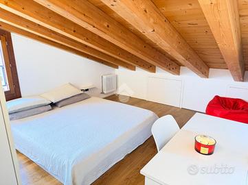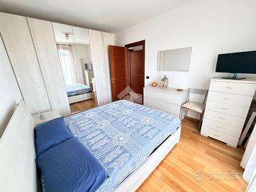 La zona notte, separata dalla zona giorno, include un bagno con box doccia e una comoda camera matrimoniale, anch'essa con accesso alla seconda terrazza abitabile.