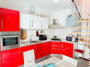 Un'elegante scala a chiocciola conduce al piano superiore, dove si trova un ampio ambiente praticabile ma non abitabile, oltre a una terza terrazza che percorre tutta la lunghezza dell'appartamento, offrendo una vista aperta e panoramica.