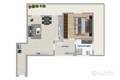 MONCUCCO: In contesto tranquillo e ben curato, all'interno di una palazzina interamente rifinita in mattoni a vista e in classe energetica B, proponiamo in vendita appartamento accogliente e funzionale, ideale come prima casa o come investimento. L'immobile si presenta luminoso e ben distribuito, con una zona giorno open space che unisce soggiorno e cucina a vista. L'ambiente è valorizzato da ampie porte-finestre che garantiscono un'ottima illuminazione naturale e l'accesso diretto al balcone che circonda l'appartamento su due lati, rendendo lo spazio arioso e piacevole da vivere. La cucina è pratica e ben organizzata, integrata armoniosamente nella zona living. La zona notte e i servizi sono ben separati, garantendo comfort e privacy. Il bagno finestrato è completo di tutti i sanitari ed è dotato di porta-finestra, un plus raro che assicura luce naturale e aerazione. L'ingresso è ordinato e funzionale, con spazio sfruttabile per arredi contenitivi. L'appartamento si presenta in buone condizioni, con pavimenti in ceramica, infissi in legno e ambienti pronti da abitare senza necessità di interventi immediati. Lo stabile è dotato di ascensore e la proprietà è completata da una cantina compresa nel prezzo. Libero ad Aprile 2026. Presso La Nostra Agenzia, è possibile su richiesta, grazie ai nostri professionisti della Kiron, ricevere una consulenza gratuita ed accedere ad un'ampia gamma di prodotti Creditizi e assicurativi come: -Mutui -Cessioni del quinto dello Stipendio o Pensione; -Consolidamento Debiti; -Prodotti Assicurativi.