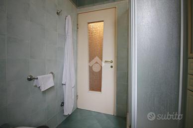 Sulla sinistra, invece, troviamo il bagno finestrato dotato di box doccia.