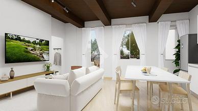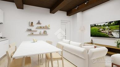 POIANO - PROSSIMA REALIZZAZIONE IN CORTE PRIVATA Consegna prevista: FINE 2026 VANTAGGIO FISCALE - BONUS ACQUISTO IMMOBILE RISTRUTTURATO. L'acquisto di questa unità come PRIMA CASA consente di beneficiare di una detrazione IRPEF di 23.000 euro circa, da ripartire in quote annuali di pari importo. In un contesto esclusivo e immerso nel verde, a soli 6 km a nord-est dal centro di Verona, tra le colline, nasce un nuovo intervento di completa ristrutturazione all'interno di una splendida corte storica, dove sorgeranno 10 nuove unità abitative moderne e funzionali. UNITA'4 - PIANO TERRA - 70 mq La soluzione abitativa proposta si sviluppa al piano terra ed è composta da soggiorno-cucina open space, una camera da letto, bagno, giardino privato di proprietà di 38 mq, plateatico di 28 mq, posto auto scoperto. CAPITOLATO TECNICO - FINITURE E DOTAZIONI Pavimenti: Gres porcellanato di prima scelta, in tinta unica a scelta da campionario visibile presso rivenditore autorizzato. In corrispondenza delle porte interne verranno installate piattine in ottone o acciaio per assorbire le dilatazioni del materiale Battiscopa in legno verniciato bianco. Rivestimenti bagni: Gres porcellanato in tinta unica. Altezza posa: 1,20 m per le pareti generali, 2,40 m per le pareti doccia Serramenti esterni: In PVC bianco con apertura a battente/ribalta e microventilazione di serie. Telaio da 70 mm con apertura verso l'interno. Zanzariere già installate all'esterno di ogni serramento. Scuri: In alluminio a pacchetto, stile "alla vicentina", colore a scelta. Porte interne: Modello cieco, battente o scorrevole, finitura laminato bianco liscio. Maniglie in lega di alluminio effetto cromo satinato. Porta d'ingresso blindata classe 3, completa di spioncino e limitatore di apertura. Impianto di riscaldamento e raffrescamento: Autonomo a pavimento. Caldaia esterna murale a condensazione marca Ariston. Predisposizione per impianto di climatizzazione: attacchi, scatola ispezione sifonata e sca