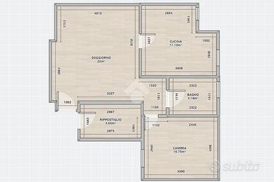 L'appartamento è composto da due locali ben distribuiti: una camera da letto matrimoniale accogliente, ampio soggiorno, cucina abitabile e un bagno finestrato funzionale.