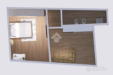 L'immobile, un bilocale sito al piano terra, si apre con un ingresso tramite porta blindata che conduce al soggiorno con cucina a vista, luminosi grazie a un'ampia finestra. Tramite un disimpegno si accede alla camera matrimoniale di ottime dimensioni e al bagno, finestrato, dotato di sanitari sospesi, doccia e allaccio per la lavatrice.