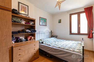 L'appartamento, graziosamente ristrutturato nel 2010, presenta una particolarità che ne aumenta il valore: l'ingresso avviene a piano terra sul lato nord, mentre sul lato opposto, grazie alla conformazione del terreno tipica della valle, l'abitazione si sviluppa come secondo ed ultimo piano, garantendo assenza di unità abitative sovrastanti e un affaccio aperto e panoramico.