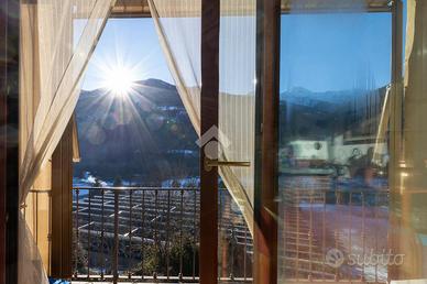 L'immobile è situato in centro paese, in posizione estremamente comoda, con tutti i principali servizi raggiungibili facilmente a piedi. La porzione di casa è inserita all'interno di un caseggiato, garantendo un contesto tranquillo e riservato. L'appartamento, graziosamente ristrutturato nel 2010, presenta una particolarità che ne aumenta il valore: l'ingresso avviene a piano terra sul lato nord, mentre sul lato opposto, grazie alla conformazione del terreno tipica della valle, l'abitazione si sviluppa come secondo ed ultimo piano, garantendo assenza di unità abitative sovrastanti e un affaccio aperto e panoramico. Gli interni sono curati e accoglienti. L'ingresso si apre direttamente sulla zona giorno in ambiente living, impreziosita dalla presenza di un caminetto e da una splendida vetrata scorrevole che, orientata a sud, regala una vista aperta sulla valle opposta. Da qui si accede a una balconata panoramica, sulla quale affaccia anche la camera da letto, creando una piacevole continuità tra gli ambienti. Completa il piano abitativo il bagno finestrato, dotato di doccia. Al piano seminterrato è presente un locale rimessa/magazzino, comodo come spazio accessorio o deposito. Il riscaldamento è autonomo, con radiatori collegati a caldaia a metano. La proprietà rappresenta una soluzione ideale per chi desidera vivere nel verde senza rinunciare alla comodità dei servizi sotto casa. Si presta perfettamente sia come prima casa che come seconda casa, ed è ulteriormente valorizzata dalla totale assenza di spese condominiali, aspetto sempre più raro e apprezzato.