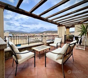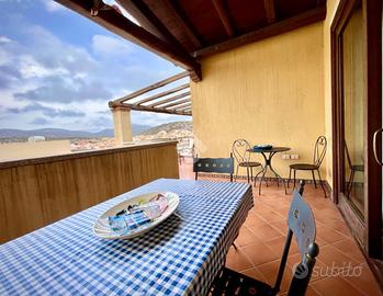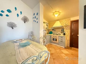 Villasimius: nella via Roma, a pochi passi dalla piazza, proponiamo in vendita un recente e sofisticato appartamento al secondo piano di un elegante stabile, dove dal primo momento in cui si varca la soglia di casa, si avverte la sensazione di vacanza. La casa è stata arredata con uno stile tipico, che evoca il mare e il relax delle estati a Villasimius: tenui colori, dall'azzurro al blu, dipingono il contesto, quasi a richiamare anche i profumi delle nostre spiagge. La casa è accogliente, con una zona pranzo soggiorno luminosa e dotata di porta finestra che permette l'uscita allo splendido terrazzo con loggiato e pergolato. La zona notte invece è dotata di camera da letto matrimoniale, anch'essa con vetrata sul terrazzo e, per finire, antibagno e bagno. Completano la proprietà due comodi vani tecnici attrezzati. L'immobile viene venduto completo di posto auto al piano cantinato. Contattateci per maggiori informazioni e per appuntamenti di visita, dal lunedì al sabato, previo appuntamento.