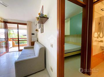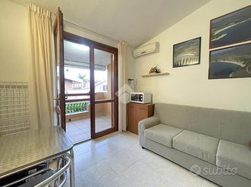 Villasimius: proponiamo in vendita un grazioso bilocale al primo piano, situato all'interno di un tranquillo complesso residenziale, perfetto per chi cerca una soluzione curata e funzionale in una delle località più rinomate della Sardegna. L'ingresso conduce a una terrazza privata accogliente, ideale per colazioni all'aperto o per momenti di relax. All'interno, la zona giorno open space si presenta luminosa e ben distribuita, con soggiorno e angolo cottura integrati in modo pratico e armonioso. La zona notte ospita una camera matrimoniale confortevole e un bagno completo, rifinito e funzionale. A completare la proprietà, un comodo garage chiuso privato, un plus utile sia per il ricovero dell'auto sia come spazio aggiuntivo per attrezzature e oggetti personali. Inserito in una posizione riservata ma comoda ai principali servizi, l'immobile rappresenta una soluzione versatile, ideale sia come casa vacanze sia come investimento da mettere a reddito nel mercato turistico. Contattaci per maggiori informazioni o per prenotare una visita.