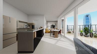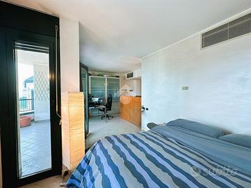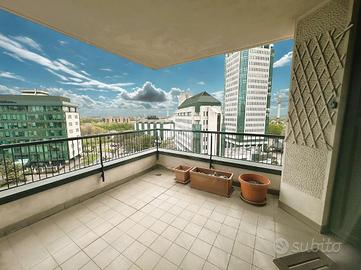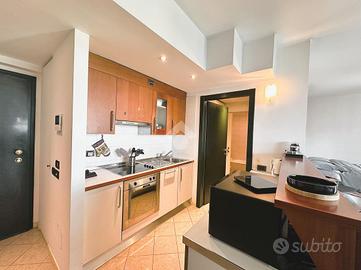 Inserito nel Centro Direzionale di Vimercate, complesso 'Abitare alle Torri', in torre Magnolia al 7° piano, con visuale panoramica unica, si vende ampio monolocale ben suddivisibile in zona giorno e zona notte. Appartamento molto luminoso, ben distribuito, dotato di grande terrazzo; pur essendo tecnicamente un monolocale, sono ben definite l'area per la cucina, la zona giorno con ampia vetrata ed accesso al terrazzo, oltre la zona notte fornita di finestra e porta finestra verso il terrazzo, con la possibilità di dividere le due zone con pareti mobili; antibagno e bagno con vasca. La Cantina completa la proprietà; per il Box euro 18.000,00. Le spese condominiali annue comprendo il riscaldamento ed il raffrescamento, oltre l'acqua calda e fredda, il tutto centralizzato con contatori singoli per ogni appartamento. Sono pari a ca. 2.500,00 euro annue, salvo conguaglio.