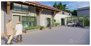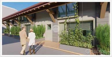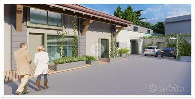 RESIDENZE MAZZINI 86 Il progetto nasce in un luogo raro da trovare oggi: una corte privata e protetta, a pochi passi dal centro storico di Vimercate e tutti principali servizi che si possono raggiungere comodamente anche a piedi. Ideale per chi è alla ricerca di un contesto tranquillo, silenzioso e sicuro. Disponibilità di quattro unità abitative indipendenti, con possibilità di acquistare posto auto e cantine. Verranno realizzati tre bilocali terra-cielo ciascuna con il proprio portico e ingresso e una grande abitazione disposta su due livelli abitativi con giardino privato. Ogni unità abitativa è realizzata per raggiungere la migliore classe energetica, oltre che già predisposta di: -sistema di automazione per il controllo delle luci e per l'apertura/chiusura degli elementi frangisole; -pompa di calore aria-acqua per il riscaldamento e per la produzione di acqua calda sanitaria e predisposizione per il raffrescamento degli ambienti; -riscaldamento radiante a pavimento; -impianto fotovoltaico dedicato -sistema di ventilazione meccanica dell'aria interna. Punto di forza la luce naturale. Ogni unità è dotata di grandi finestre e ampie vetrate. Possibilità di scegliere le finiture interne da un ottimo capitolato. Possibilità di installare una colonnina di ricarica elettrica. APPARTAMENTO 1 Bilocale disposto su due livelli abitativi. Ingresso indipendente al piano terra attraverso un patio di proprietà che conduce all'interno dell'immobile quindi alla zona giorno attrezzata con angolo cottura. Disimpegno, antibagno con attacchi per la lavatrice e bagno finestrato. Tramite scala interna si accede al piano primo, ove si sviluppa la zona notte con un secondo bagno e un ripostiglio.