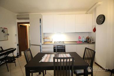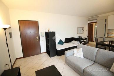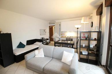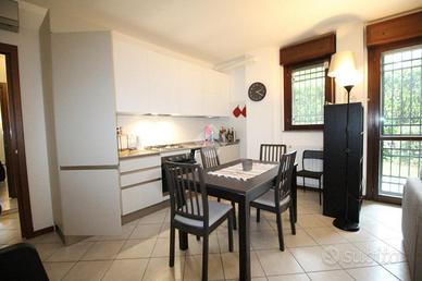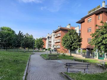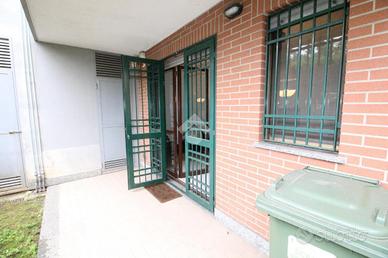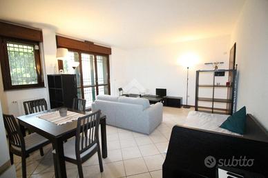 in un elegente condominio denominato 'RESIDENZA I GIARDINI' di recente costruzione, a poca distanza dall'Ospedale San Raffaele e la univeristà Vita-Salute, il complesso, con carattersitiche in mattoni a vista è costituito da diverse scale circondato da un ampio giardino condominiale, appartamento sito al paino terra di 65 mq con giardino angolare di circa 100 mq. L'appartamento nel suo interno è composto da un ampio soggiorno con angolo cottura e accesso ad patio esterno di circa 20 mq con locale lavanderia esterno in cui è presente la caldaia del riscaldamento e la lavatrice. La zona notte è collegata con un ampio disimpegno che porta nella camera matrimoniale e bagno con vasca. Gli optional presenti nell'abitazione sono: - Condizionatore - Zanzariere - inferriate. Completa la prorprietà una cantina. Il riscaldamento è autonomo. Possibilità box