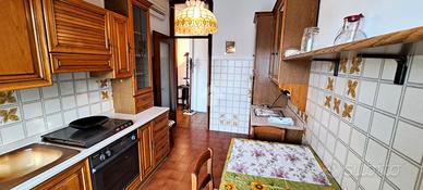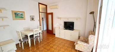In un contesto signorile che è stata edificato alla fine degli anni settanta e si presenta in ottimo stato di manutenzione in quanto la facciata è rivestita in kinkler. L'appartamento è sito al primo piano dotato di ascensore composto da un ampio ingresso che porta nel soggiorno con accesso sul bacone con esposizione ad ovest, cucina abitabile, anch'essa con il balcone, disimpegno che porta nella zona notte, in cui troviamo una camera matrimoniale con balcone camera singola e bagno dotato sia con vasca e doccia. L'appartamento ha una doppia esposizione sud-ovest. L'immobile nel suo interno è tenuto bene, dispone di infissi in legno, pavimentazione in caramica. Inoltre dispone di diversi optional tra cui impianto di condizionatore e tende da sole sui balconi e tapparelle motorizzate. Possibiltà di trasformazione l'immobile (con una piccola modifica) in un tre locali. Completa la proprietà una cantina.