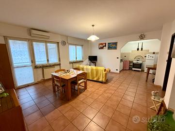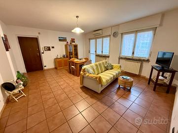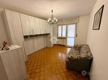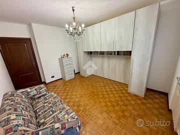 Appartamento sito al secondo piano con ascensore, che collega comodamente anche il piano interrato dove si trovano box auto e cantina, entrambi compresi nel prezzo. L'ingresso si apre su un luminoso soggiorno con angolo cottura, ambiente di ottima metratura, potenzialmente divisibile per ricavare due locali abitabili, nel caso si volesse la cucina abitabile separata. La zona giorno è valorizzata da un balcone dotato di tenda veranda, ideale come sfogo esterno utilizzabile in più stagioni. Un disimpegno suddivide la camera matrimoniale dotata anch'essa di balcone, dal ripostiglio e dal bagno con vasca. L'immobile è stato ristrutturato nel 2010; è dotato di riscaldamento autonomo e condizionatore nel soggiorno. Soluzione completa, funzionale e pronta da abitare.