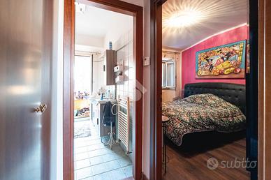 La zona notte comprende una camera matrimoniale finestrata, con affaccio interno che garantisce privacy e silenzio. Il bagno finestrato, dotato di box doccia, con accesso ad un comodo e funzionale ripostiglio e a una piccola lavanderia.