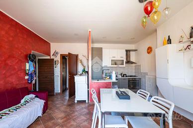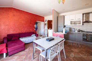 L'appartamento si apre su un luminoso soggiorno con angolo cottura, arredato con mobili moderni, da cui si accede direttamente a una splendida terrazza panoramica, una rarità del quartiere medievale. Questo spazio esterno rappresenta il vero punto di forza dell'immobile: un angolo riservato e tranquillo da cui godere di una vista suggestiva sui tetti del centro storico.