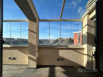 Il punto di forza dell'abitazione è sicuramente il terrazzo verandato di 30 mq dalla quale si accede dalla zona giorno. Questa è una vera e propria oase di pace e tranquillità in casa. Un giardino di inverno, un prolungamento naturale del soggiorno, un angolo da arredare finemente godendo di una vista meravigliosa.