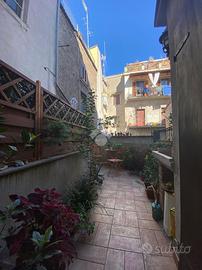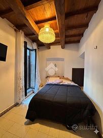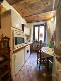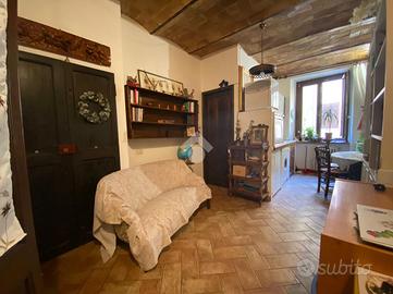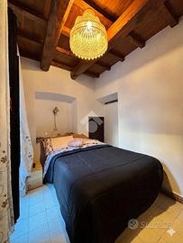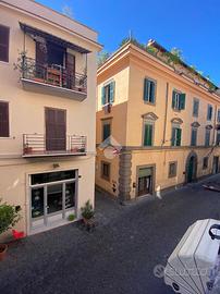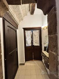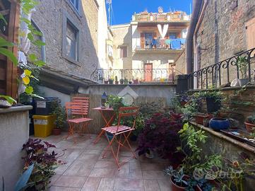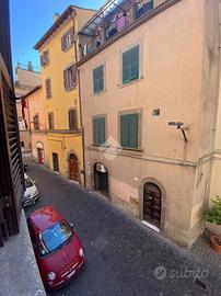 Nel cuore di Via Mazzini, dove il fascino del centro storico si intreccia con la vita quotidiana, si nasconde un piccolo rifugio dal carattere autentico e senza tempo. Siamo al primo piano di un palazzo curato e riservato, composto da sole due unità abitative: un contesto intimo, lontano dalla frenesia dei grandi condomini. Qui prende forma un grazioso bilocale che conquista fin dal primo sguardo per i suoi dettagli unici e per l'atmosfera calda e accogliente che solo certe case sanno trasmettere. Entrando, si viene accolti da un soggiorno impreziosito da un suggestivo soffitto a botte, mentre i pavimenti in cotto raccontano la storia e la tradizione del luogo. La camera da letto, con il suo elegante soffitto a cassettoni in legno, offre un ambiente raccolto e ricco di personalità. Le cornici originali in peperino aggiungono ulteriore autenticità, rendendo ogni spazio distintivo e ricercato. Nonostante le dimensioni contenute, l'appartamento è stato studiato con grande attenzione: ogni angolo è sfruttato con intelligenza. Nel disimpegno tra soggiorno e camera troviamo una pratica nicchia perfetta per cappotti e oggetti di uso quotidiano, mentre una seconda nicchia in camera da letto contribuisce a mantenere ordine e funzionalità senza rinunciare all'estetica. Completa la proprietà un comodo bagno finestrato con doccia, ben inserito nella distribuzione degli spazi. Il vero gioiello, però, è il terrazzino abitabile ad uso esclusivo, con accesso dalla camera da letto. Uno spazio raro, intimo e riservato, affacciato sull'interno, che regala tranquillità e silenzio, lontano dalla vivacità di Via Mazzini. Qui è presente anche un pratico ripostiglio, ideale per alloggiare la caldaia, oltre all'allaccio dell'acqua, elementi che rendono lo spazio ancora più funzionale e versatile. Un angolo perfetto per una colazione lenta, una cena estiva o semplicemente per ritagliarsi un momento di relax. Attualmente locato con contratto transitorio, questo immobile rappresenta una s