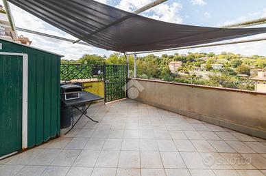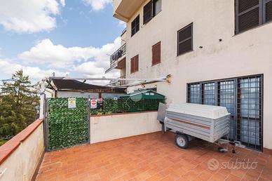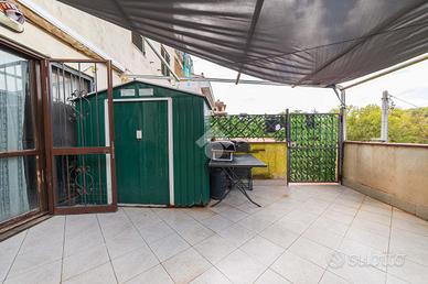 La proprietà è dotata di doppio posto auto fronte casa e una terrazza privata di 25 mq con accesso indipendente tramite cancelletto.