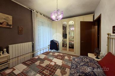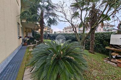 BILOCALE CON GIARDINO - Inserito in un curato complesso residenziale dei primi anni 2000, valorizzato da un piacevole spazio verde condominiale. La posizione è particolarmente comoda, a pochi passi dalla fermata dell'autobus e ideale per raggiungere facilmente il centro. L'ingresso si apre su una luminosa zona giorno open space con soggiorno e cucina a vista, ben distribuiti e con accesso diretto allo spazio esterno ad uso esclusivo, ben curato e disposto sui due lati dell'abitazione. La zona notte è composta da un disimpegno ben organizzato con una pratica armadiatura, dalla camera matrimoniale, anch'essa dotata di uscita sul giardino e dal bagno accessoriato di doccia. Una comoda scala interna collega l'abitazione alla taverna al piano inferiore, ambiente versatile e accogliente, perfetto come sala hobby, studio, o spazio per ospiti. Completa la proprietà un ampio box auto.