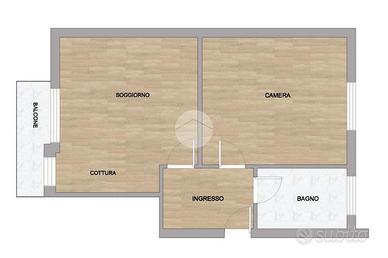 L'abitazione, costruita negli anni '80, si presenta funzionale e ben distribuita. L'ingresso si apre sulla zona giorno, composta da soggiorno con angolo cottura, un ambiente luminoso e facilmente arredabile. La zona notte comprende una camera da letto matrimoniale di generose dimensioni e un bagno finestrato.