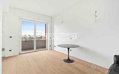 Luminoso soggiorno con angolo cottura e uscita sul balcone