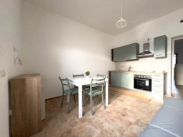 L'immobile è internamente composto da ingresso dalla via Cimarosa su soggiorno con angolo cottura, dal disimpegno che conduce ad ogni ambiente abbiamo l'accesso alla camera da letto, al bagno finestrato con doccia e l'uscita sul cortile privato con accesso immediato alla zona lavanderia. No spese di condominio.
