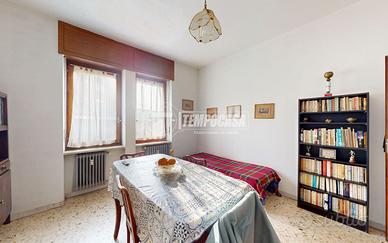 L'alloggio, posto al piano rialzato di uno stabile tranquillo, è composto da ingresso su corridoio, che separa ordinatamente i vari ambienti, tinello con cucinino con accesso al primo balcone con affaccio su cortile interno, bagno finestrato con vasca e ampia camera matrimoniale con uscita sul secondo balcone.