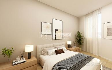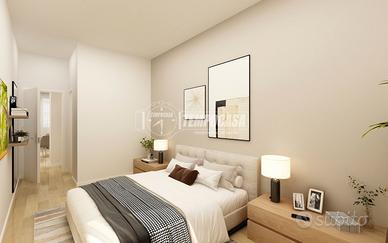 L'appartamento si apre su un disimpegno che conduce direttamente alla luminosa zona giorno con cucina a vista. La zona notte è composta da un'ampia camera matrimoniale.