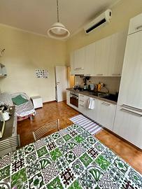 Stanze spaziose con letto matrimoniale in appartamento ristrutturato, luminoso e ben tenuto. Cucina con balcone sul parco, bagno con lavatrice, cantina, posto bici/motorino e auto in condivisione.