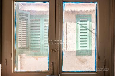 L'appartamento è dotato di pavimentazione in scagliette di marmo e infissi in legno.