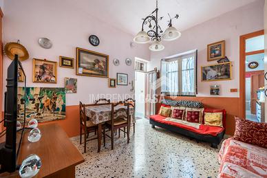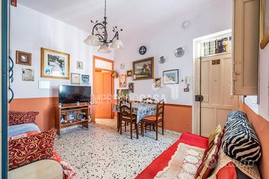 L'appartamento è dotato di pavimentazione in scagliette di marmo e infissi in legno.