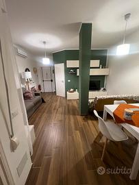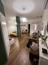 Ingresso su zona living con angolo relax e divano letto