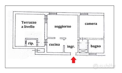 L'immobile al suo interno si compone da ingresso in disimpegno, cucina, soggiorno, camera da letto matrimoniale, bagno e ampio terrazzo a livello.