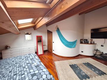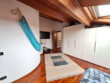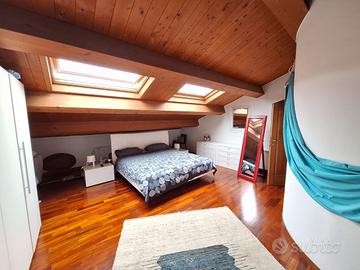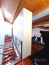 Piano mansardato: ampio soppalco che si affaccia sul soggiorno, attrezzato con armadio, grande camera da letto matrimoniale dotata di bagno completo e finestrato, comodo ripostiglio-centrale termica.