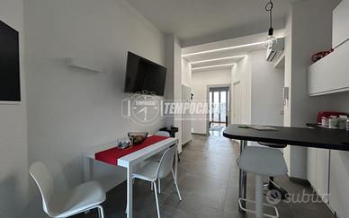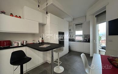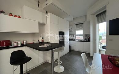 L'immobile, completamente e finemente ristrutturato, si distingue per uno stile moderno e curato in ogni dettaglio. L'ingresso si apre su una luminosa zona giorno con cucina a vista, impreziosita da soffitti con tagli a LED che donano un'atmosfera sofisticata e contemporanea.
