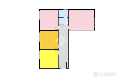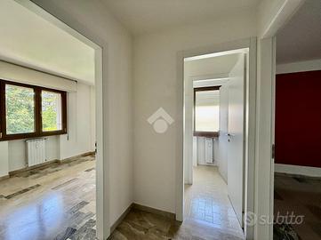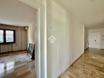 Tutti gli ambienti sono ben definiti e comunicanti con il corridoio centrale, che termina con l'antibagno e il relativo bagno finestrato. Presenta quattro ambienti separati finestrati, che possono essere adibiti a studio, camere, soggiorno, cucina separata.
